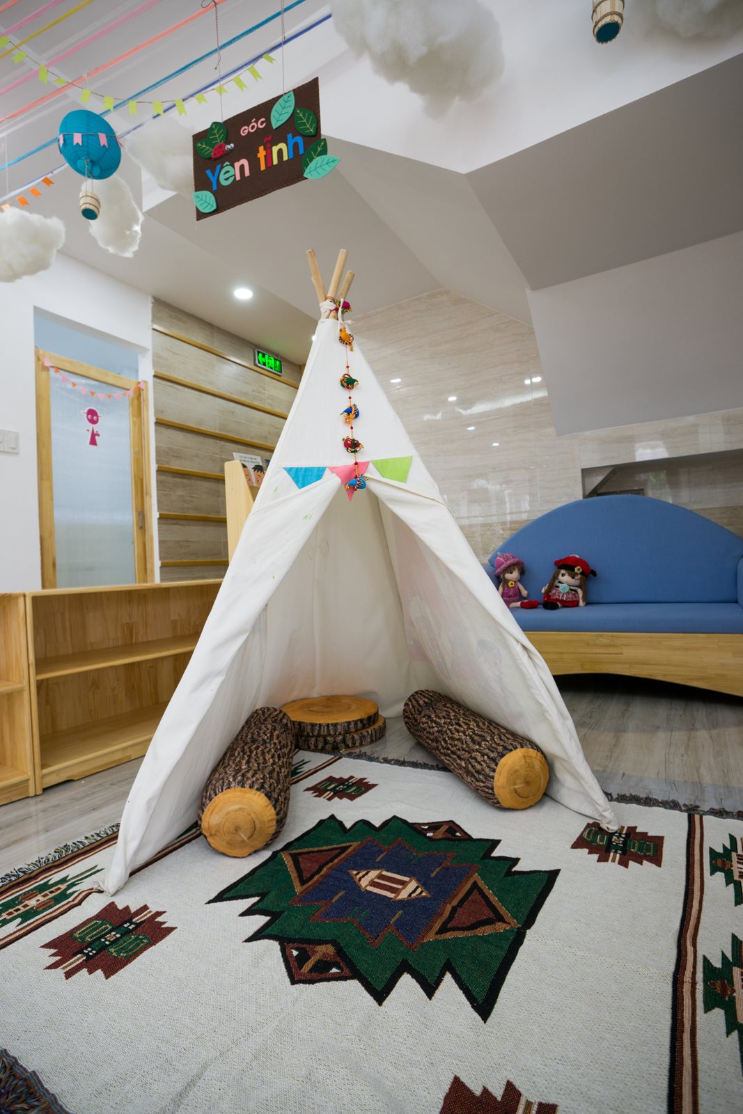Góc Yên tĩnh: dành cho những phút giây tĩnh lặng có ích cho trí thông minh nội tâm của trẻ, nơi con có thể chìm đắm vào một cuốn sách, hay đơn giản là nằm mơ mộng vẩn vơ.