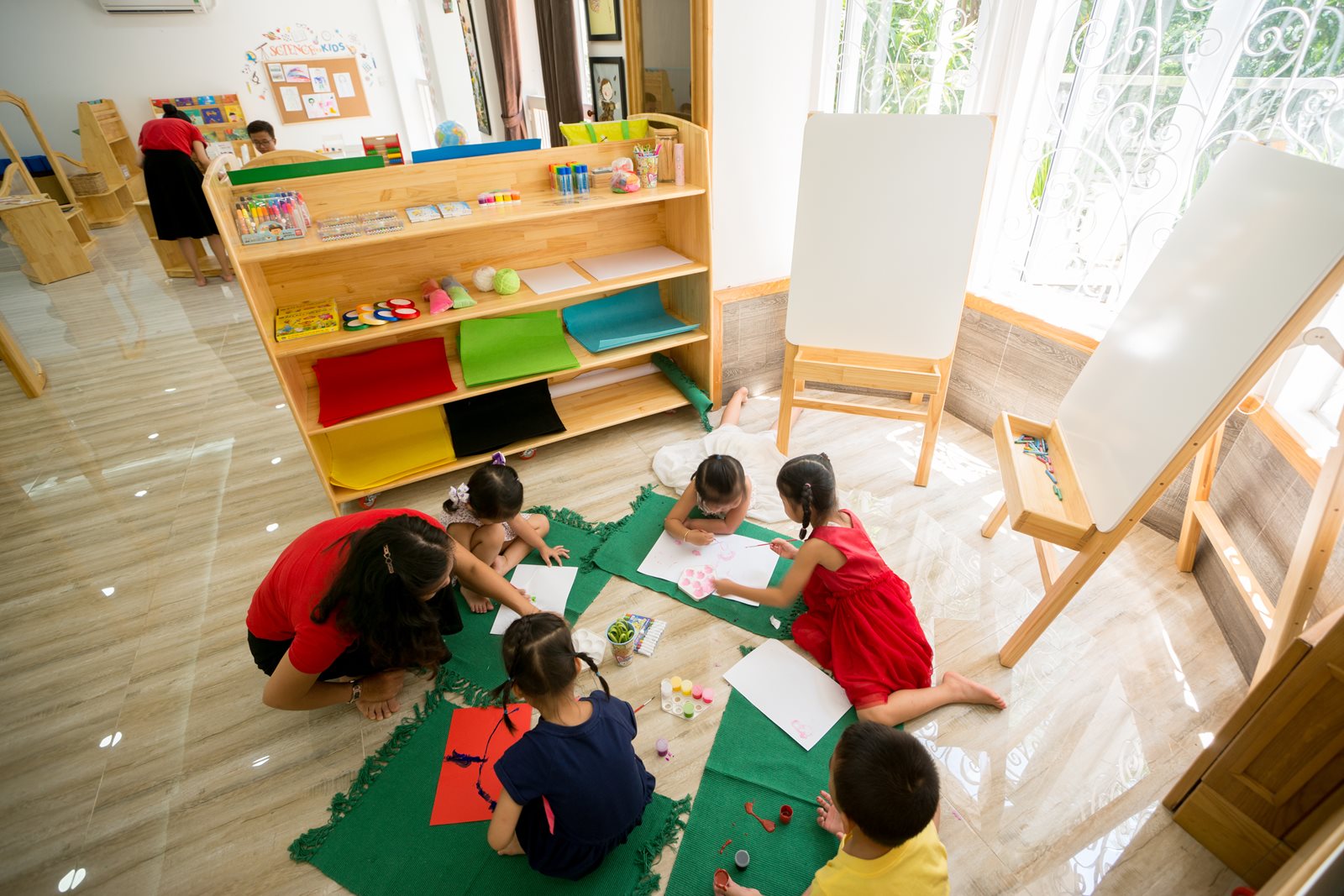Góc Nghệ thuật - Sáng tạo: dành cho các hoạt động nghệ thuật, khoa học và cảm quan, nhằm phát triển trí thông minh hình ảnh, thông minh thiên nhiên